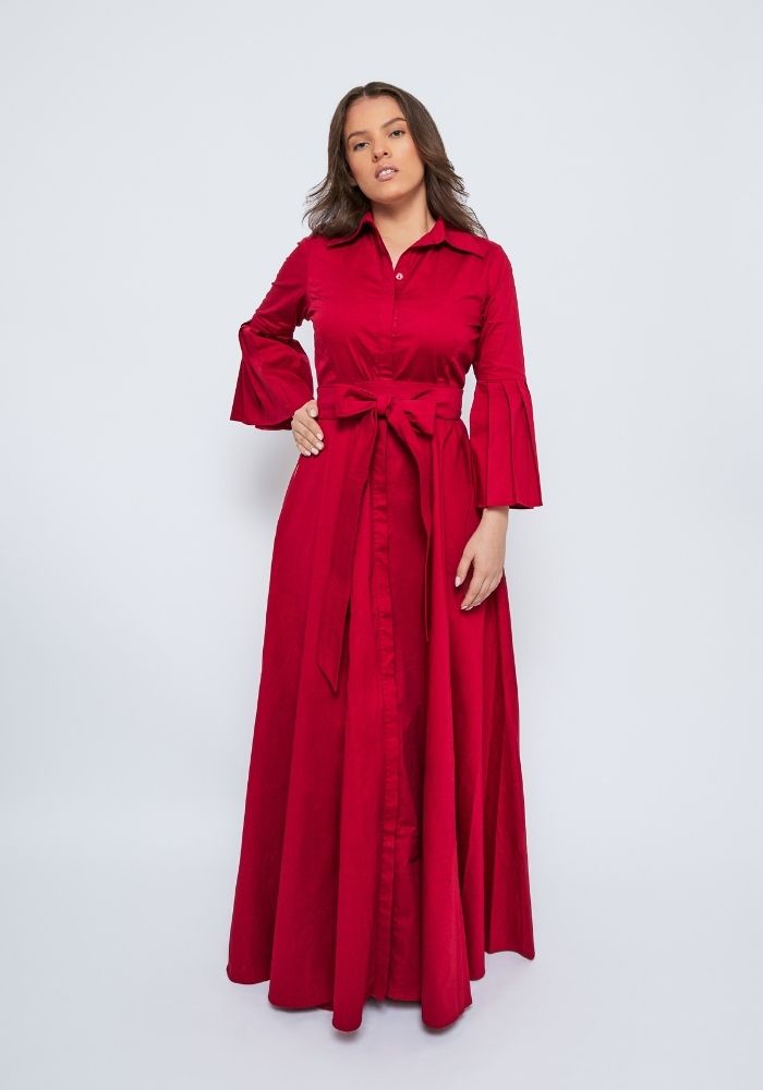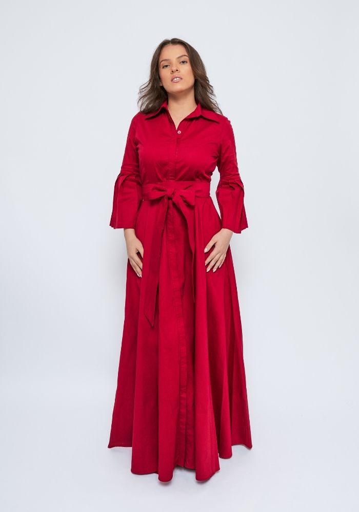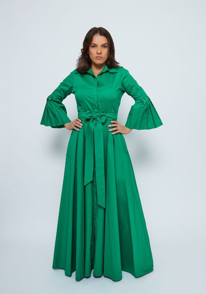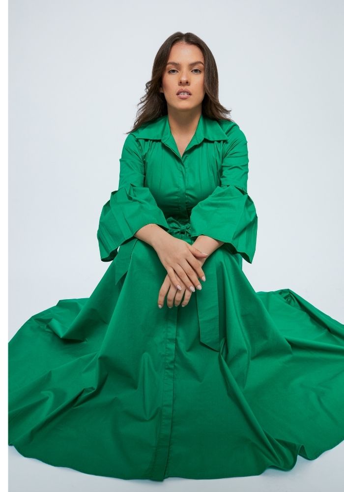 ALGODÓN SUAVE DE ALTA CALIDAD CON UN TOQUE DE ELASTICIDAD/ BOTONERA INVISIBLE / MANGAS 3/4 CON PLIEGUES / CINTURON ENVOLVENTE / BOLSILLOS LATERALES